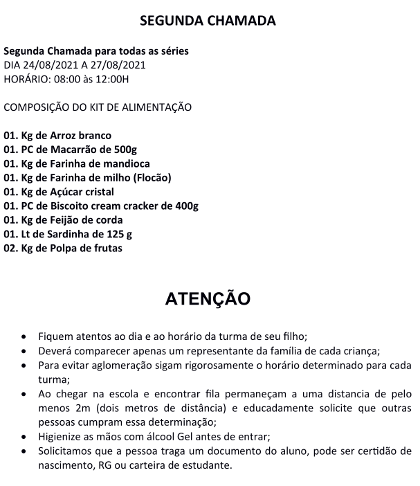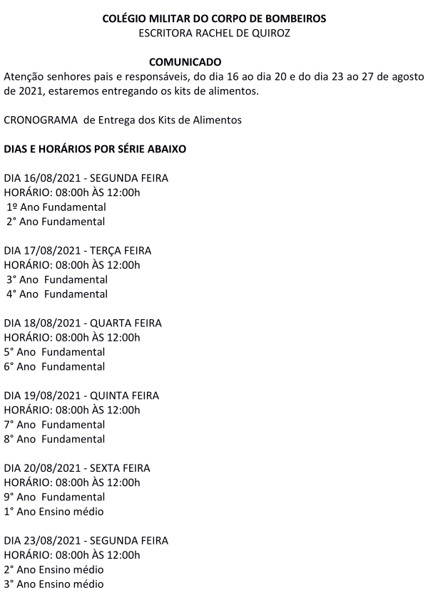 Cronograma de entrega de kits de alimentos aos alunos
